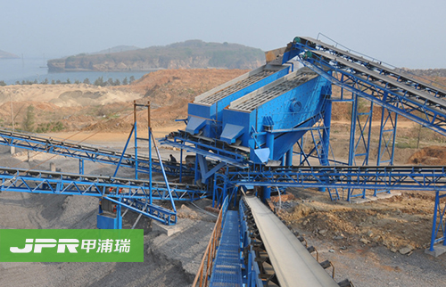 碎石生產(chǎn)線主要由振動給料機、顎式破碎機、反擊式破碎機、振動篩、膠帶輸送機、集中電控等設(shè)備組成。為滿足客戶不同的加工需要,可配備圓錐式破碎機、除塵 設(shè)備等。大塊石料經(jīng)料倉由振動給料機均勻地送進鄂式破碎機進行粗碎,粗碎后的石料由膠帶輸送機送到反擊式破碎機進行進一步破碎;細碎后的石料由膠帶輸送機 送進振動篩進行篩分,篩分出幾種不同規(guī)格的石子,滿足粒度要求的石子由成品膠帶輸送機送往成品料堆;不滿足粒度要求的石子由膠帶輸送機返料送到反擊式破碎 機進行再次破碎,形成閉路多次循環(huán)。成品粒度可按照用戶的需求進行組合和分級,為保護環(huán)境,可配備輔助的除塵設(shè)備。